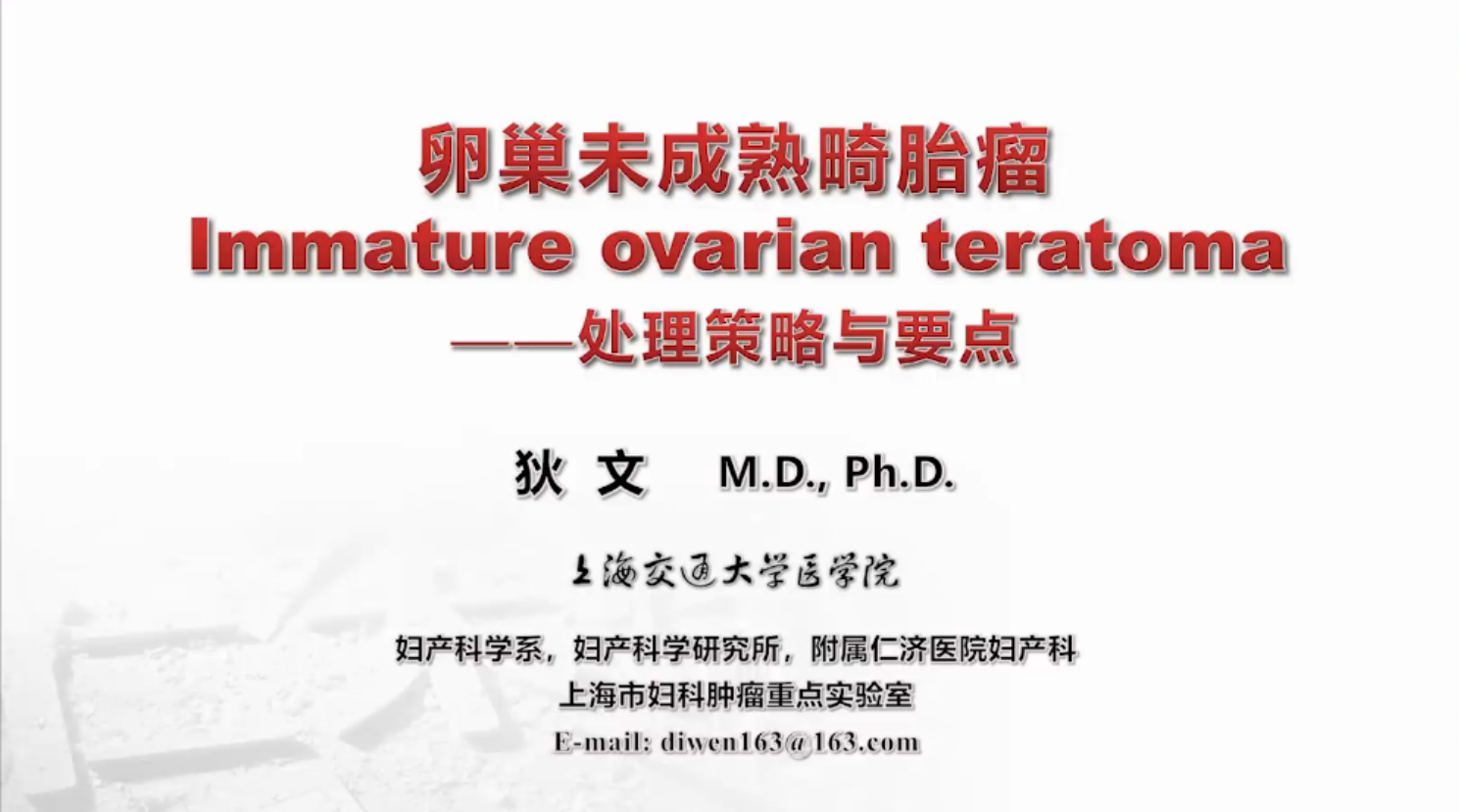 ❖上海市妇科肿瘤重点实验室主任